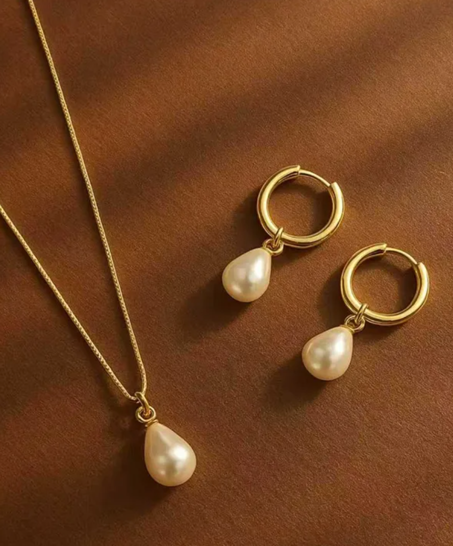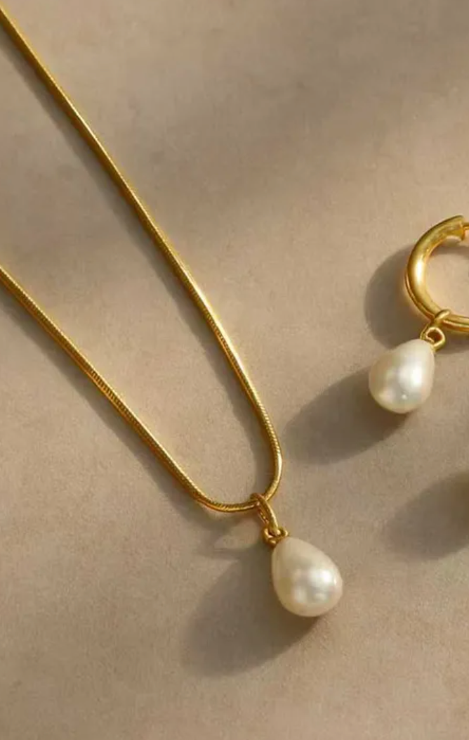 Necklace Water Drop Pearl Hoop 18K GP  (NK13)- NON TARNISH